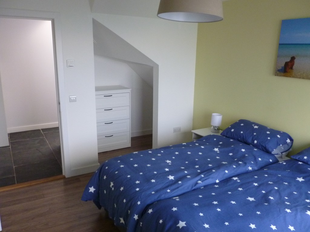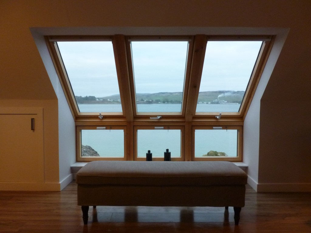 The house has 3 bedrooms all with floor to ceiling windows so you can wake up to the view of the bay. Lach Mhara comfortably sleeps 6 people with a kingsize room with large fitted wardrobes, a twin room and a double room which can be used as a secondary, downstairs living room as well.